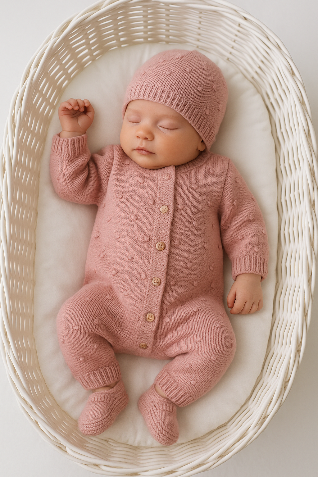 Confeccionado em malha suave, este conjunto é ideal para manter o seu bebé confortável e quentinho. O macacão possui botões ao longo de toda a parte frontal, facilitando na hora de vestir e na troca da fralda. Disponível em seis cores encantadoras.